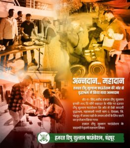 शेर-ए-हिंद, शहीद हज़रत टीपू सुल्तान की २२६वीं यौमे शहादत के अवसर पर, दिनांक ४ मई २०२५ को *हज़रत टीपू सुल्तान फाउंडेशन, चंद्रपूर* की ओर से एक भावपूर्ण एवं सेवाभावी कार्यक्रम का आयोजन डेबो सावली, महाकाली नगरी भाग-२, देवाळा स्थित वृद्धाश्रम में किया गया।